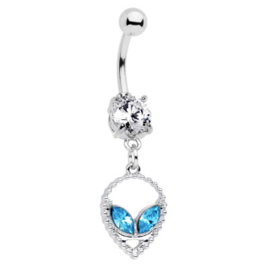 Clear Aqua CZ Gem Black Hollow Alien Dangle Belly Ring