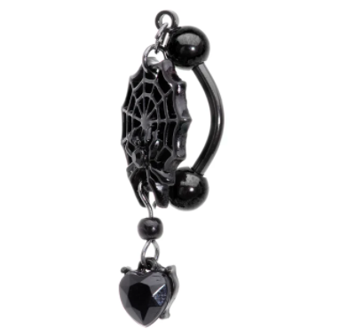 Black Gem Black Spiderweb Halloween Reversible Dangle Belly Ring
